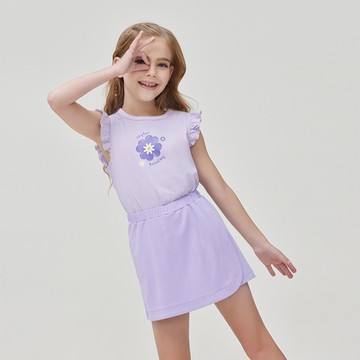 韓國 Jelispoon - 花朵印層次荷葉短袖套裝-粉
