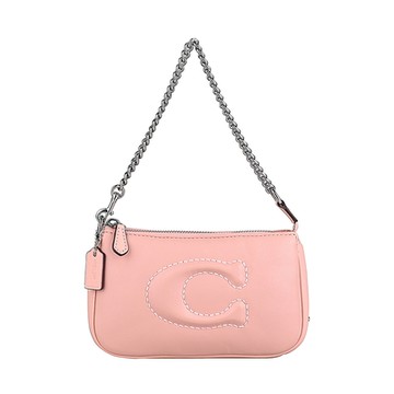 COACH Nolita 19 立體縫線C字LOGO納帕皮革拉鍊鏈袋手提肩背麻將包(小/淺粉)