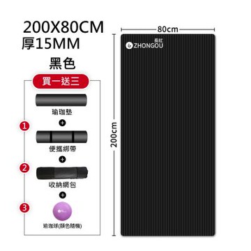 【NBR加厚款 買1送3】15MM厚 200X80CM 瑜珈墊/防滑墊/地墊 贈綁帶、背袋、瑜珈球 SGS認證 XFE-YG52