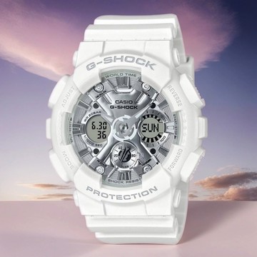 CASIO 卡西歐 G-SHOCK WOMEN 夏日海濱度假 全白閃耀圓形雙顯錶 GMA-S120VA-7A