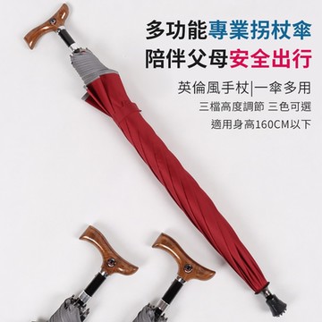 【心靈捕手嚴選】經典抗風遮陽可調長短拐杖傘-五檔高度(伸縮拐杖 助行拐杖 手杖傘 登山杖 登山傘)