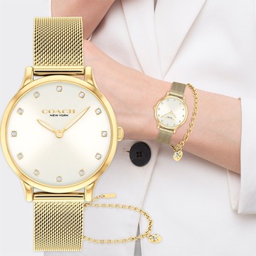COACH Chelsea 香檳金米蘭帶女錶 愛心手鍊套組 1212購物節 送禮推薦 CO14000109