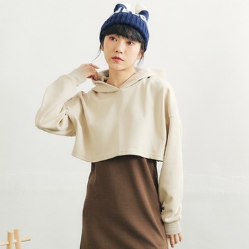 雲朵棉假兩件連帽長袖上衣