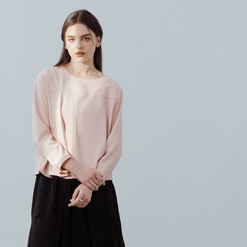 粉色立領抽皺襯衫