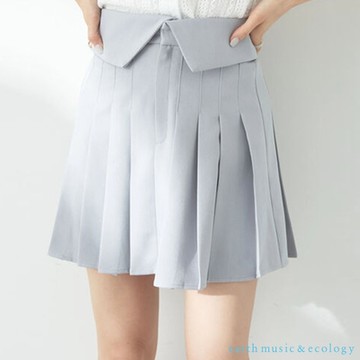 earth music 反折後鬆緊腰際設計百褶短裙