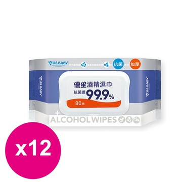 【US BABY 優生】酒精濕巾超厚型加蓋80抽X12包