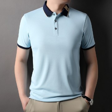 萊卡棉短袖t恤男夏季翻領polo衫商務休閑透氣中青年時尚半袖上衣