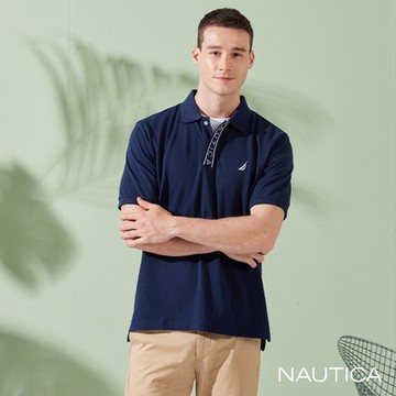 Nautica男裝 品牌LOGO造型門襟設計短袖POLO衫-深藍
