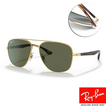 RayBan 雷朋 雙槓飛官框太陽眼鏡/金 琥珀 深綠鏡片#RB3683 00131-59mm