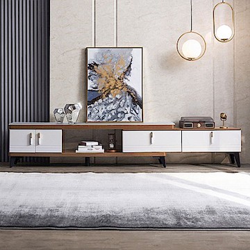 點我下載林氏木業現代撞色可伸縮岩板電視櫃 LS186-胡桃色+白色 (H014335896)
