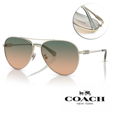 COACH 飛官框太陽眼鏡/淺金 淺綠棕漸層鏡片#HC7140 900513