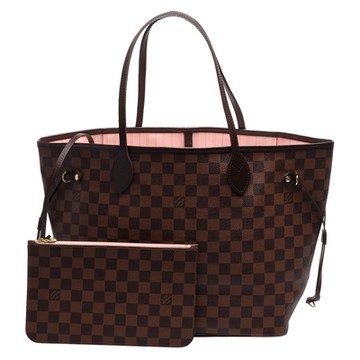 LV Louis Vuitton路易威登 N40598 經典NEVERFULL MM Damier帆布肩背托特包(芭蕾粉色)