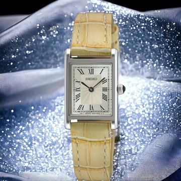 SEIKO 精工 CS系列 長方形 簡約羅馬數字 淑女石英錶-黃 SWR095P1/4N30-00H0J