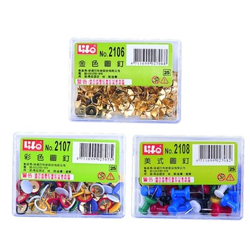 徠福 豪華型 金色圖釘/彩色圖釘/美式圖釘 / 盒 NO.2106/NO.2107/NO.2108