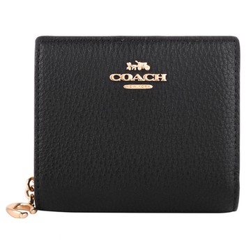 點我下載COACH 金馬車荔枝紋皮革暗釦拉鍊短夾(素面黑)
