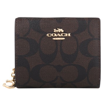 點我下載COACH 金馬車防刮皮革暗釦拉鍊短夾(深咖X內黑)