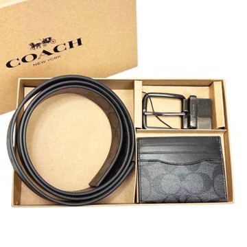 Longchamp 黑/咖色雙帶頭皮帶禮盒