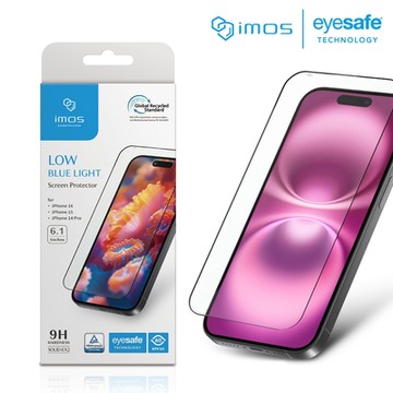 imos iPhone 16/15/14 Pro 6.1吋 德國萊因認證 2.5D RPF60低藍光螢幕保護貼