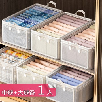 【荷生活】加厚耐磨鋼骨結構可折收納箱 可透視材質分層疊加換季整理箱-中大號各1入組