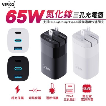 VERICO 65W GaN 氮化鎵 三孔快速充電器 可充筆電/Switch/iPhone16