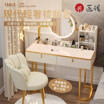 合理分區儲物 盡享專屬化妝間 LED燈三擋光源 柔和不刺眼 封閉雙抽儲物 滿足歸納收納
