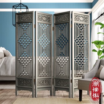 C est Chic 瑤台月實木透雕四片式屏風-風化灰 W196*D3.5*H196 cm