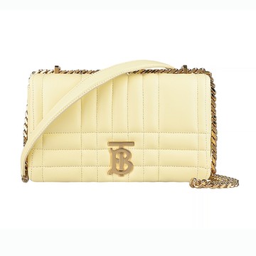 BURBERRY 巴寶莉 LOLA立體金字母 LOGO格紋縫線設計羔羊皮鏈帶磁扣肩背斜背包(小/奶油黃)
