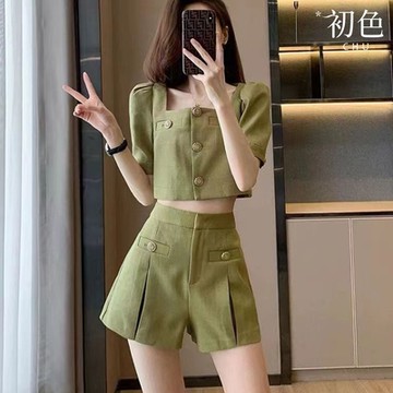 單件/套裝ins時尚闊腿褲套裝女夏韓版松緊腰短褲+短袖T恤兩件套潮