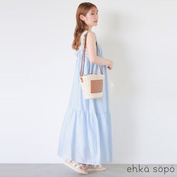 懶人不易皺.雙肩帶美背傘襬長洋裝