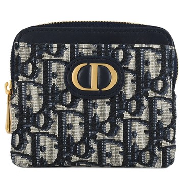 Dior MONTAIGNE 藍色緹花布翻蓋拉鍊卡片/零錢包