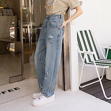 轉角1號精品女裝店~復古港味高腰顯瘦牛仔長褲寬松闊腳褲拖地褲1入