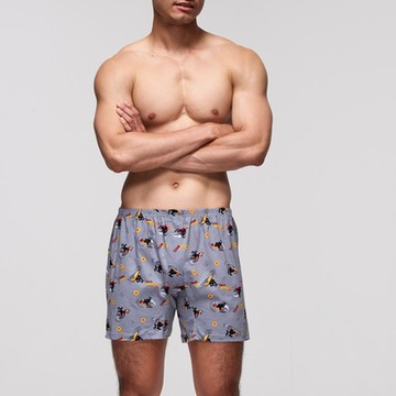男款_Freedom.不開襟純棉寬鬆四角內褲(灰麻藍-Freedom)