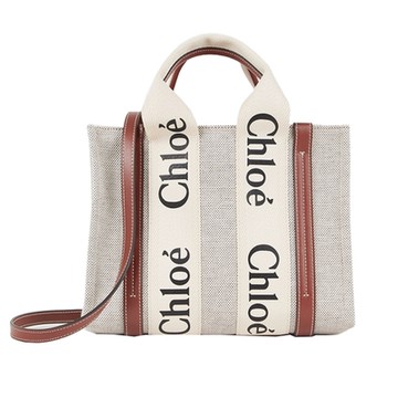 【Chloe’ 蔻依】經典小號Woody帆布皮革飾邊手提斜背購物包(顏色任選)