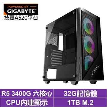 技嘉A520平台[文學家N08C]R5-3400G/32G/1TB_SSD