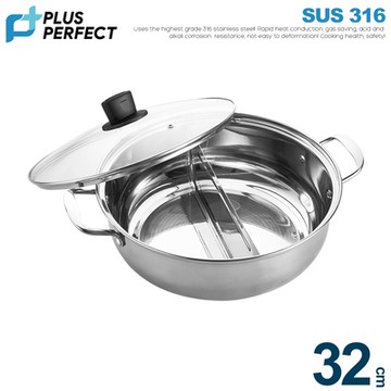 TRIARROW 三箭牌 32CM 養生鴛鴦鍋 #304不鏽鋼 適用瓦斯爐/電爐/電磁爐 鋼化玻璃鍋蓋 1個