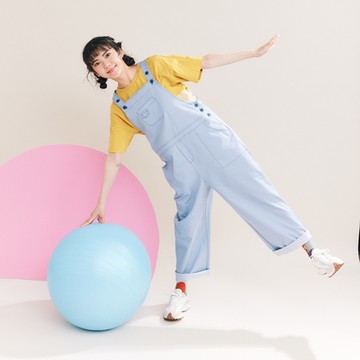 【Dailo】撞色率性鈕釦吊帶長寬褲 米 咖
