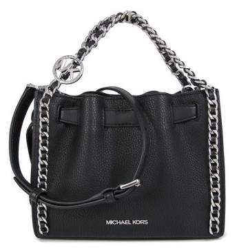 MICHAEL KORS Mina 銀字Logo荔枝紋編織銀鏈手提斜背兩用包(黑色)