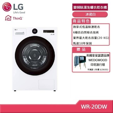 LG樂金 20公斤 AI Dry 免曬衣乾衣機 冰磁白 WR-20DW