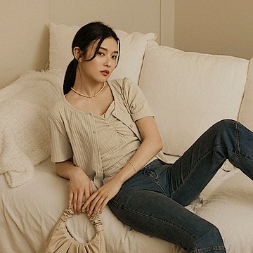 立體紋理方領造型排釦短袖上衣