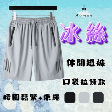 【Airman】口袋拉鍊休閒短褲 超彈力冰絲褲 冰絲短褲