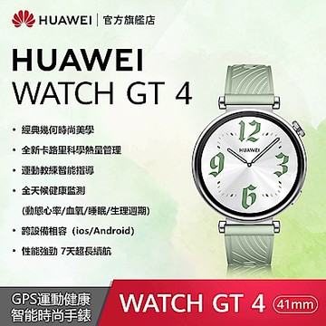 【HUAWEI 華為】Watch GT4 GPS運動健康智能時尚手錶 41mm 活力款 草木綠 - 送九好禮