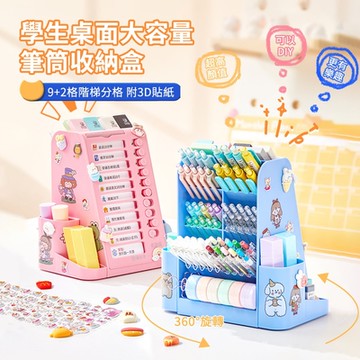 MAOTAIZI 二合一 學生桌面大容量筆筒 360度旋轉多功能文具收納盒 自律目標打卡器 附貼紙
