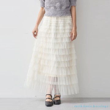 2WAY抽繩設計層次紗裙-附內襯(1K44L0L0300) - earth music&ecology