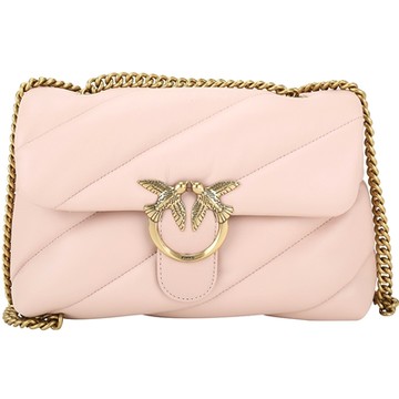 PINKO Love Birds Baby 燕子銅釦納帕羊皮鍊帶斜背/手拿包(粉色)