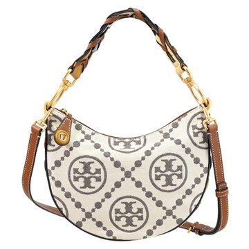點我下載TORY BURCH 織布穿孔造型兩用/半月包(米白)