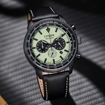 CITIZEN 星辰 Chronograph CA4505-21X 光動能三眼計時時尚錶 夜光綠 44mm