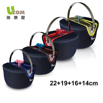 【瑞康屋UCOM】牛仔系列蝴蝶結防溢提鍋-四鍋組22+19+16+14cm附提袋