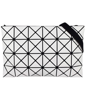 ISSEY MIYAKE 三宅一生 BAOBAO 白灰色皮質三角格4x5盒形斜背包