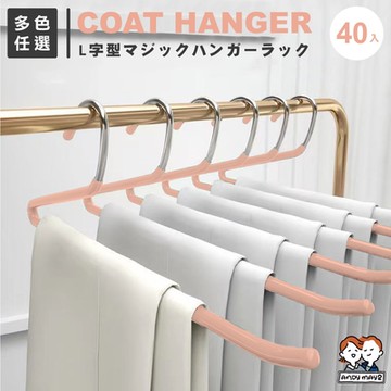 ANDYMAY2 (40入) L型魔術衣褲架 OH-T104【浸膠衣架 褲夾 褲架 裙夾 無痕衣架 衣架】