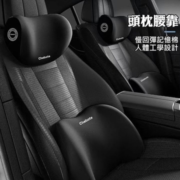 汽車記憶棉頭枕+腰靠套裝 車用座椅靠墊 3D護頸枕